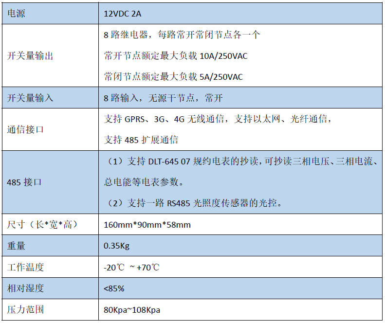 輸出特性:8路輸出,一組常開(kāi),一組常閉,額定負(fù)載250VAC/10A。支持本地回路開(kāi)關(guān)操作,支持遠(yuǎn)程回路開(kāi)關(guān)操作。