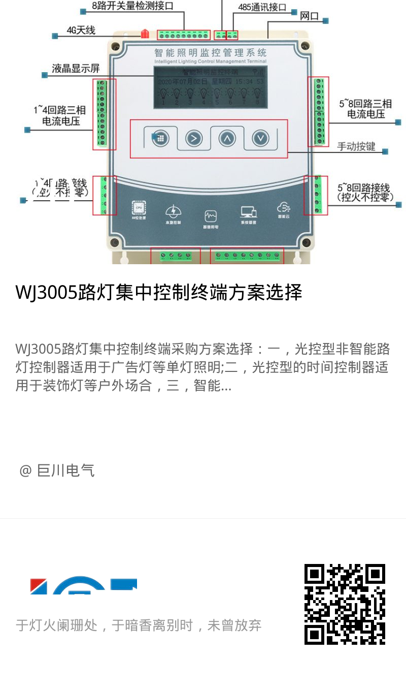 巨川電氣專業(yè)提供路燈自動監(jiān)控終端全系列方案,產(chǎn)品均通過第三方檢測認(rèn)證歡迎咨詢。