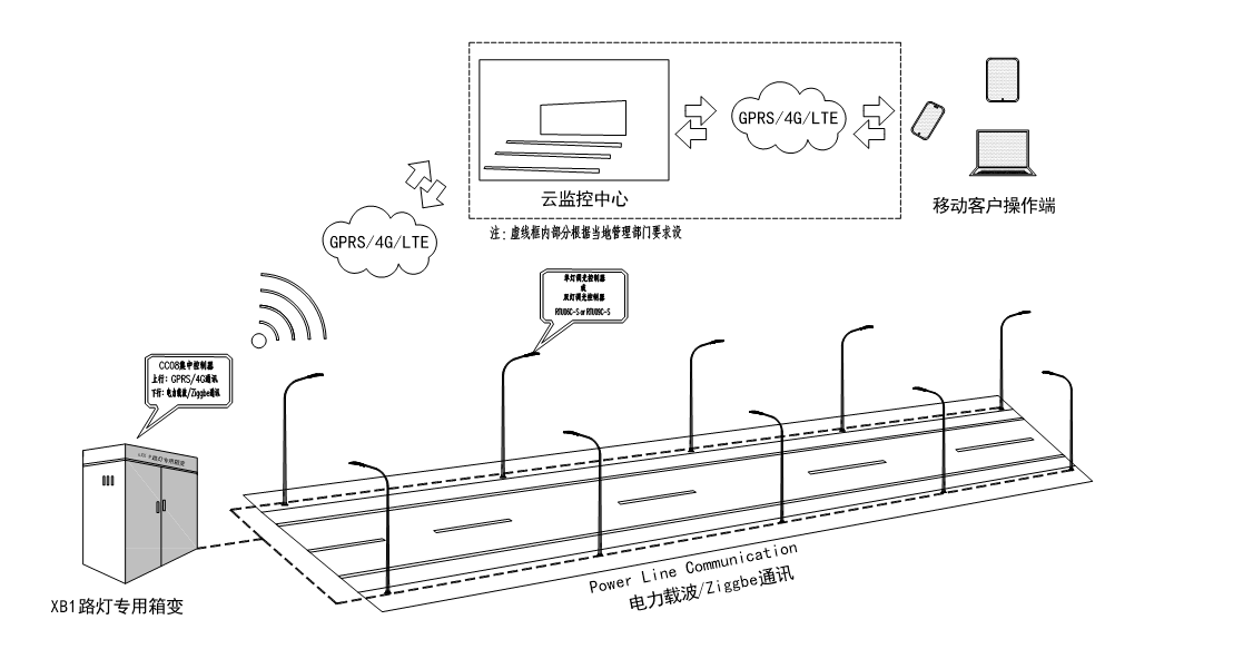 WJ2005路燈照明監(jiān)控終端WJ2090單燈監(jiān)控模塊 系統(tǒng)架構(gòu)說明: