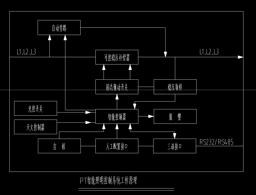 微處理器存儲的程序,可以控制設(shè)備所有的運行方式,檢測節(jié)電系統(tǒng)的輸出電壓、旁路及運行情況,傳送校正電壓所需要的指令,并通過控制外部信號實現(xiàn)公稱電壓和節(jié)電電壓的轉(zhuǎn)換。它還可以通過RS-232或RS-485接口,實現(xiàn)與計算機之間的信息傳送和對系統(tǒng)的監(jiān)控。在特殊情況下,需要對智能照明調(diào)控裝置進行人工調(diào)控時,可以通過RS232接口實行遠程的控制和遙控。