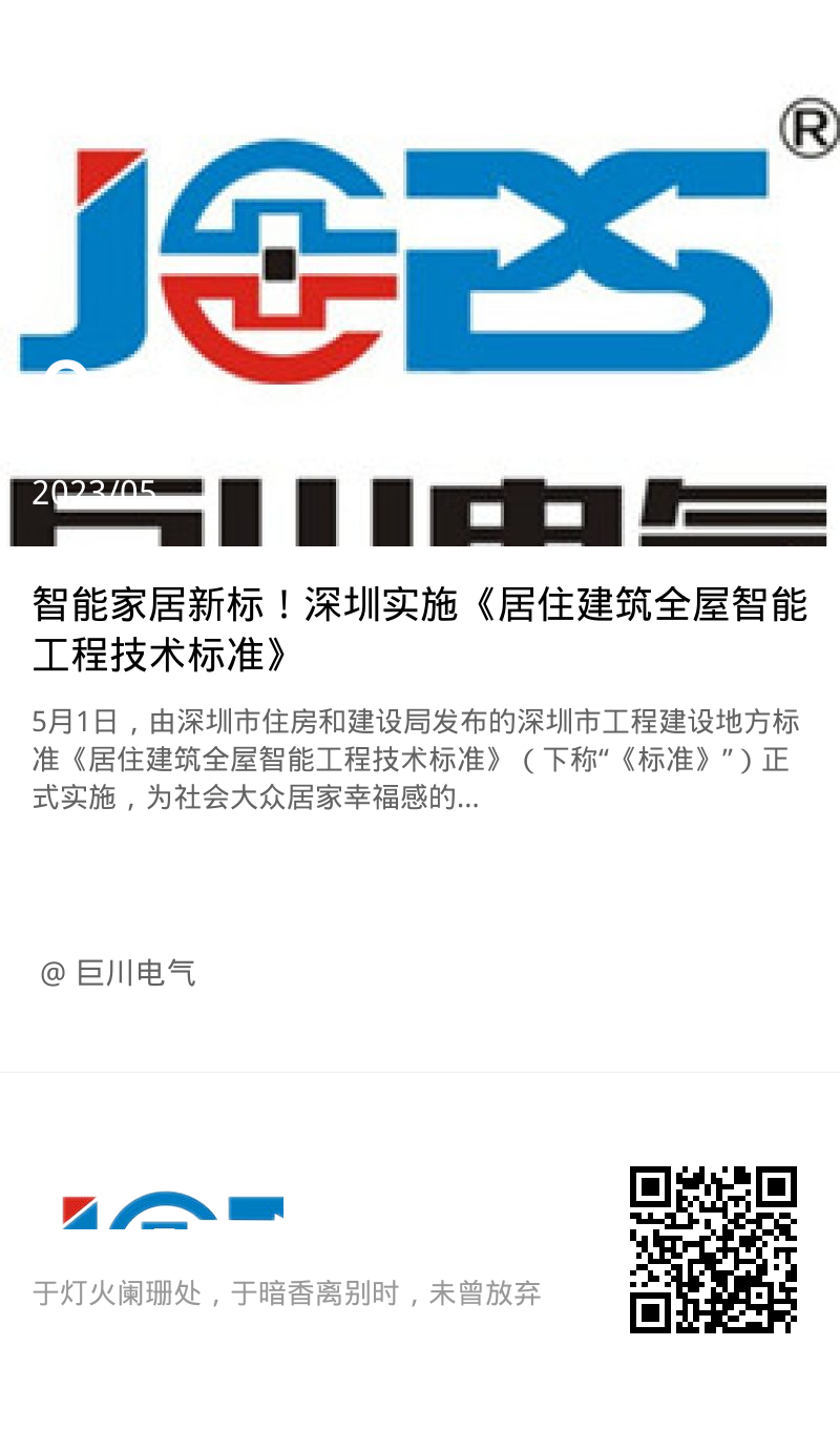 5月1日,由深圳市住房和建設(shè)局發(fā)布的深圳市工程建設(shè)地方標(biāo)準(zhǔn)《居住建筑全屋智能工程技術(shù)標(biāo)準(zhǔn)》(下稱“《標(biāo)準(zhǔn)》”)正式實(shí)施,為社會(huì)大眾居家幸福感的營(yíng)造和提升提供了技術(shù)參考。