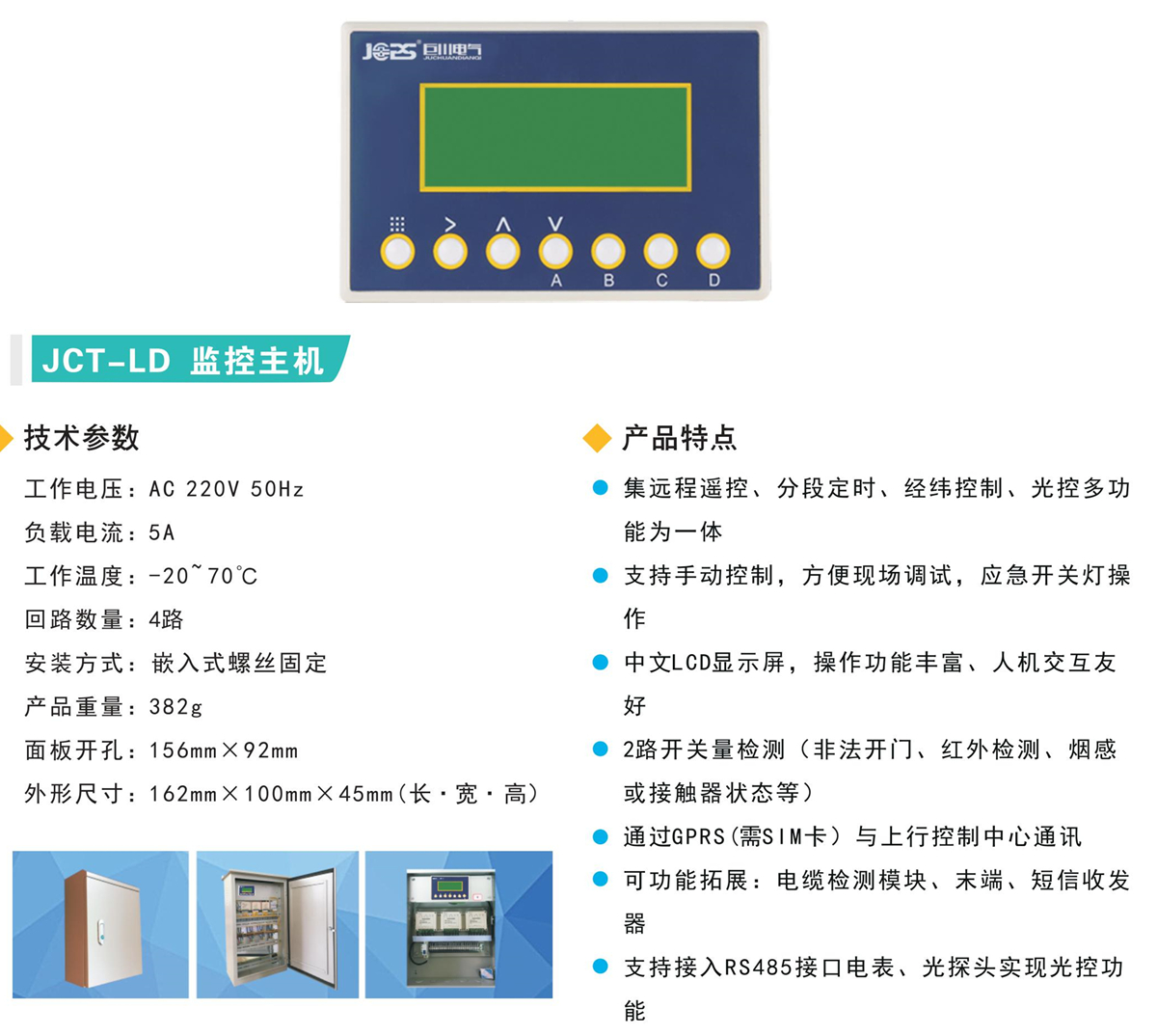 監(jiān)控主機(jī)(JCT-LD),具有2路開關(guān)量檢測、可擴(kuò)展到24路電纜檢測。