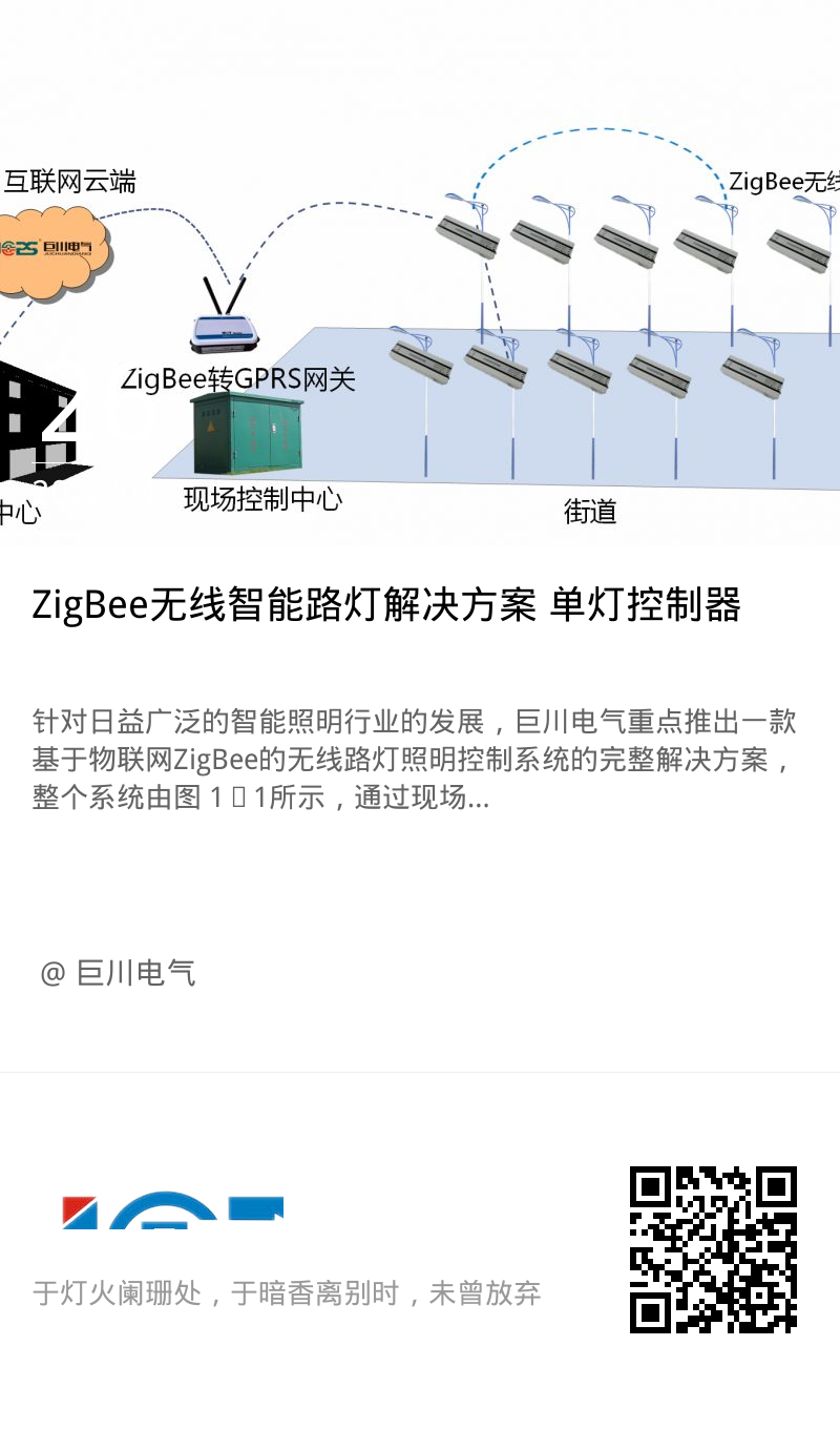 在整個路燈的安裝過程中,無需使用控制信號線,采用無線Zigbee信號作為數(shù)據(jù)傳輸,大大減少了特別是舊燈改造工程的工程量。